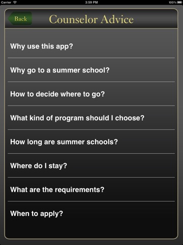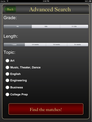 There is a myriad of options to choose from when it comes to summer schools. This app aims to help 9th, 10th, and 11th graders navigate this wide array of choices and find the right one that fits their needs.