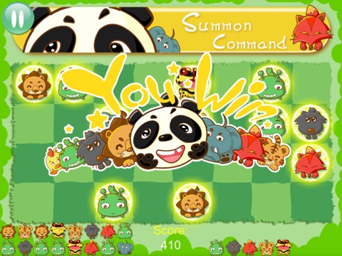 有趣的地方是你需要運氣來召喚你想要的。棋盤上有4乘8共32個召喚魔法陣,你可以觸摸任意一個來隨機召喚一隻動物。如果這只動物的魔法火焰是黃色,那它是你的。反之如果是藍色的火焰,那它就是你的敵人!召喚並指揮你的軍隊來擊敗電腦吧!或者,重新再來一盤!