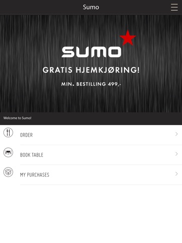 Welcome to Sumo Restaurants own app for ordering! Here you can see the menu, and order directly from your smartphone - its that easy!