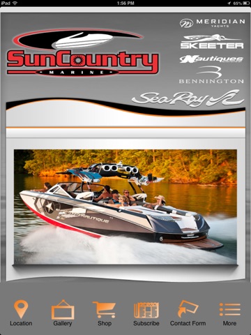 Welcome to the Sun Country Marine Moblie App! This App is designed to be your mobile resource for all your boating needs. This App is loaded with useful tools you can use on and off the water and we have made it interactive so you can stay up to date with all the latest boating and water sport news. You’ll be able to see all our latest models as well as our previouly enjoyed inventory with a touch of a button. Need to scan one of those QR codes you see everywhere? Our App has a built in scanner. Want to network with fellow water sport enthusiasts? Now you can with our Forum features. Send us a Photo of you having fun on the water or pulling off a “Sick Trick” and we may post it in our Gallery feature. You will also be able to arrange service, shop for parts and accessories, find useful boating tips, access boating links and have access to special offers only available through the Sun Country Mobile App.