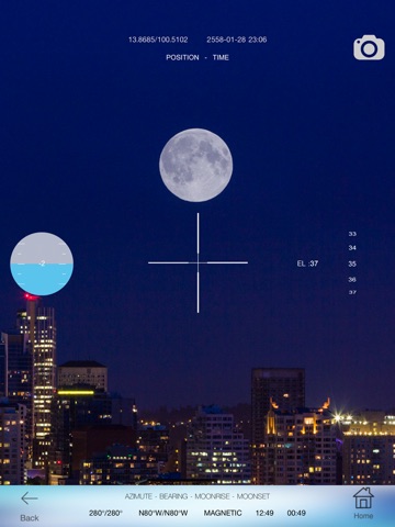 * Uses GPS and magnetometer to find the correct sun or moon position for your current location and time.