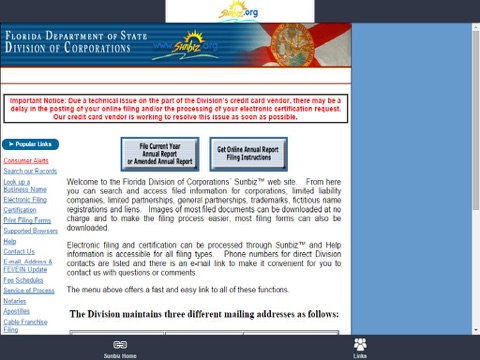 Sunbiz Home, Home 2 Links, Facebook, Call Us