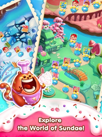 Join your friends plus millions others and get hooked on the most addictive ice cream puzzles in SUNDAE POP! Help lovely little Eva and her cute animal friends on their journey through the tasty and edible land of Sundaes.
