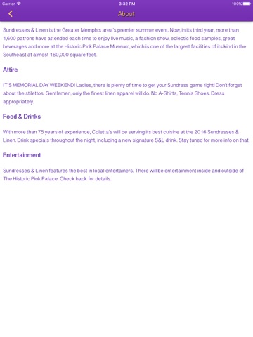 The Sundresses & Linen App is the best way to stay informed about the Greater Memphis area’s most sophisticated summer event. Purchase tickets, receive event announcements, view photos, receive exclusive discounts, and upload your photos and reviews for your friends to see!