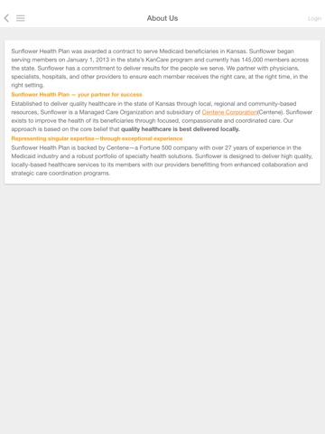 For Medicaid members in Kansas, the Sunflower Health Plan app puts your health plan in your pocket. With the app, you can: