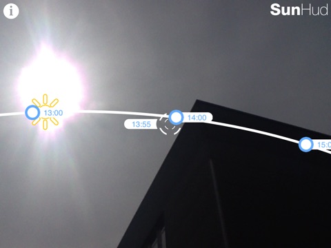 Richtet man das iPhone auf die Sonne, dann zeigt auch die App diese Position an. Nur dann stimmen die anderen Angaben in der Landschaft (virtual reality) nicht. Natürlich stimmen die anderen zeitlichen Verlaufspunkte auch nicht. Schade, es ist eigentlich eine schöne, einfache App