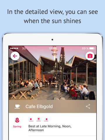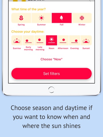 Filter the SunnySpots to seasons and daytimes, if you are looking for a specific time to enjoy the sun.