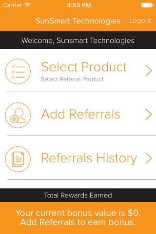 SunSmart Technologies is a free App available for anyone to download and is used for those that want to earn rewards by sending referrals to SunSmart Technologies. It is as simple as downloading the App, selecting the Sales Rep and registering. Once registered, you can begin sending referrals right away. It is the one app that will allow the user to easily submit referrals to SunSmart Technologies and track the progress of your referral and rewards right on your mobile device. Referring has never been so easy.