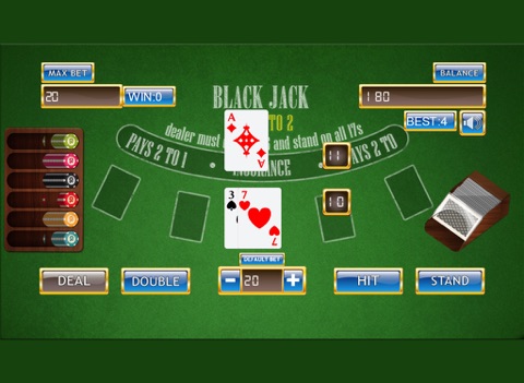 Free to play authnentic Blackjack twentyone simulator just like playing at a Casino environment.