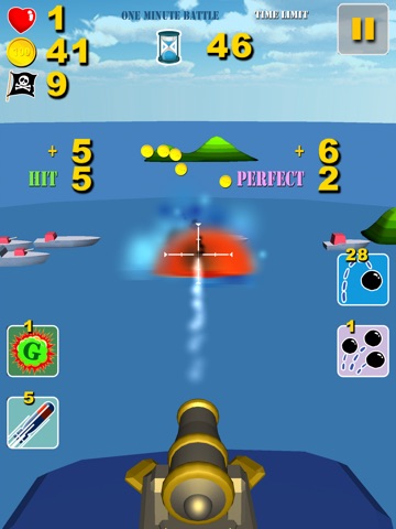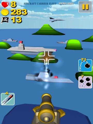 Use the cannon to combat the invading enemy, 3D screens, parabolic physical projection, 6 kinds of weapons (Cannon,Shotgun,Mine,Torpedo,Cross Bomb,Giant Bomb), 8 volumes 36 missions.