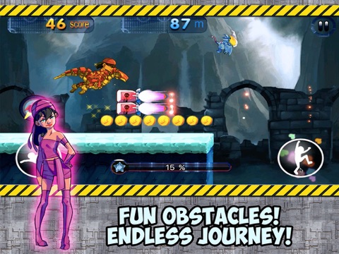 • Tilt ‘n Touch game play – swipe the screen to guide RunBot while he runs, then tilt your device to move in flying Jetpack mode!