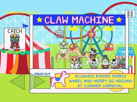 Test your skill of timing and hand-eye coordination to catch and collect adorable plush toys. Avoid static and moving obstacles to catch the right prize. There are surprising obstacles like prize stealing crabs and plushy abducting ufos. You will earn credits as you win levels and receive achievements. Use these credits to play the gashapon, a toy capsule machine game. There are 50 unique gacha prizes to collect. What youll win is a surprise.