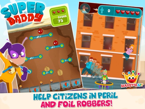 Un jeu bien réalisé et vraiment ludique qui plaira aux enfants, tout en mettant en scène les papas de manière positive ! :-) Bravo !