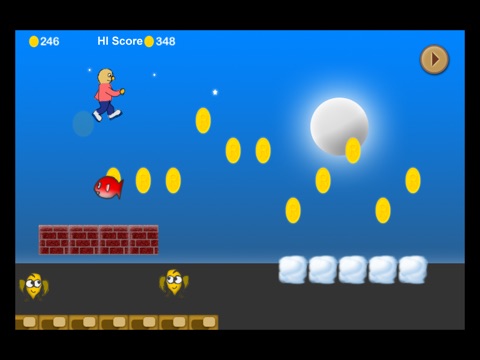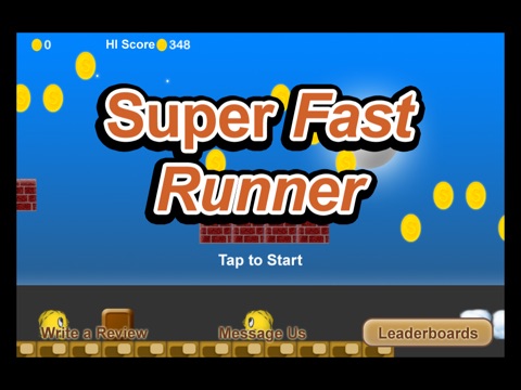 Super Fast Runner is a simple and addicting game. Tilt the screen left or right to run backwards or forward. Touch screen to jump. The longer you touch the higher he jumps.