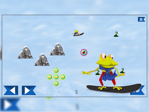 Froggy is a Super Frog, he has a super hero costume and love to snowboard in the forest, he loves the speed and the fresh air of the outside. Your favorite meal is butterflies, and there is a lot of them in the forest ! You want to pick up as much as you can !! But your are not alone in there, the snakes populations has gone crazy and they are everywhere, you most not get too close or theyll get a bite out of you.