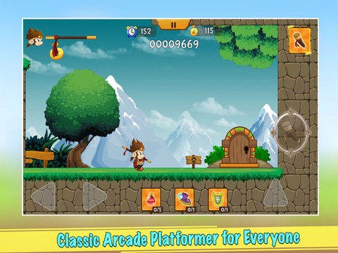 Lets run, jump and beat enemies with hero by simple touch buttons. You can also use it to chose his kind of weapons to attack angry animals on his way. Collect as many coin as possible to upgrade his skills or add more weapons. Also, boy can pick up items on his traveling in each map! Find secrets and unlock extras to get the most out of the game.