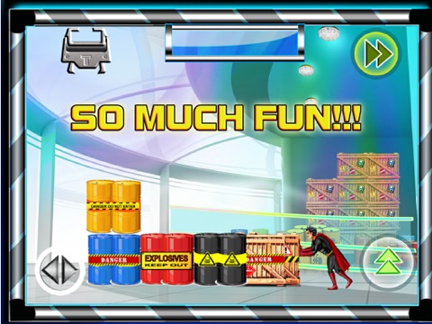 The villains are dropping dangerous and hazardous containers on earth. A Super Hero is here to protect us. You are The Super Hero and you are in command. You need to arrange and align these dangerous Metal Boxes in lines so they can be shipped off and destroyed. You can push the steel boxes right or left to align them evenly. You can jump over one box (or 2 if you get the power-up) if you need to. Once you have created a full line on boxes, they will disappear.