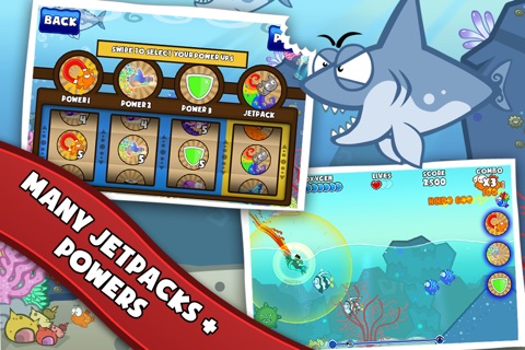 Use your fast reflexes to avoid all the ‘bad fish in the sea’ and catch edible fish that earn you coins and help complete objectives. Spend coins in the store to grab power ups or upgrades to provide more oxygen and health, or even a new shiny jetpacks. Use in-app purchase to buy more coins and shells to accelerate yourself at mastering the levels.