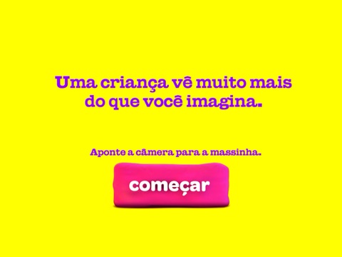 Baixe Super Massa no seu iPhone ou iPad, inicie o aplicativo, aponte para a massinha e veja através dos olhos de uma criança.