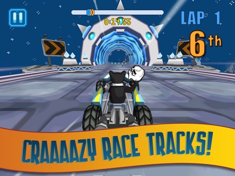 - Three crazy race tracks: Salamanca Outskirts, Bacon Bonanza, and The Final Frontier... with more to come!