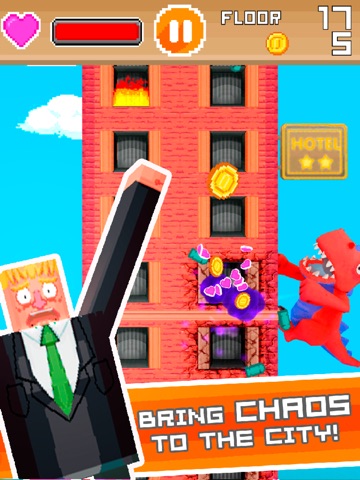 Super Monster Mayhem captures the oldschool arcade gameplay and brings it to your phone. Climb an endless building eating innocent civilians while avoiding bullets, angry cops, fire, explosions and other hazards in this easy to play but hard to master game. Master your rampaging skills, beat your score and reach the top of the leaderboards.