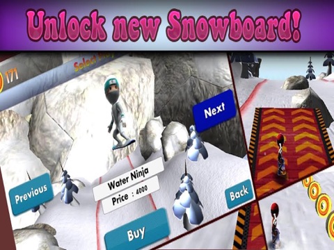 ninja snowboarding game for ios is a free game for unlimited fun and quality time pass entertainment. This easy to play will unleash unlimited challenge and fun for you. You have to tap left side on the screen to slide the ninja run and you have to tap right side on the screen for setting Ninja jump.