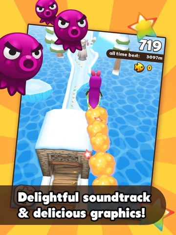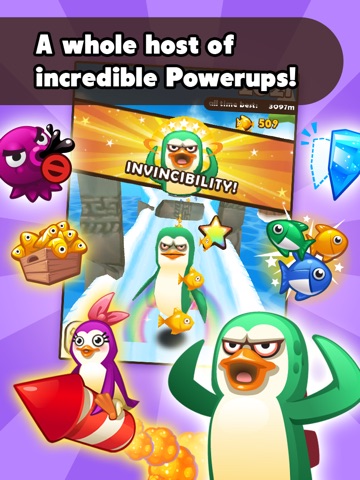 Choose from a number of adorable penguins to run, jump, and fly your way to victory against the evil octopuses, collecting delicious fish and rescuing as many other penguins as possible along the way.