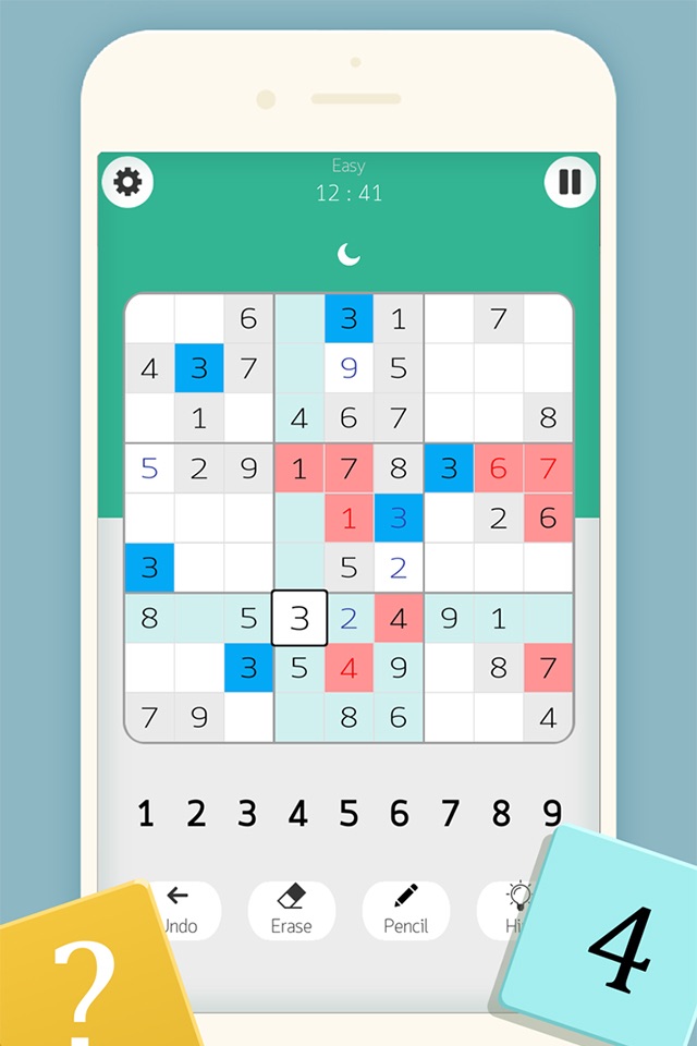 Tap on an empty cell to select it, then simple tap on a number below to enter a solution.
