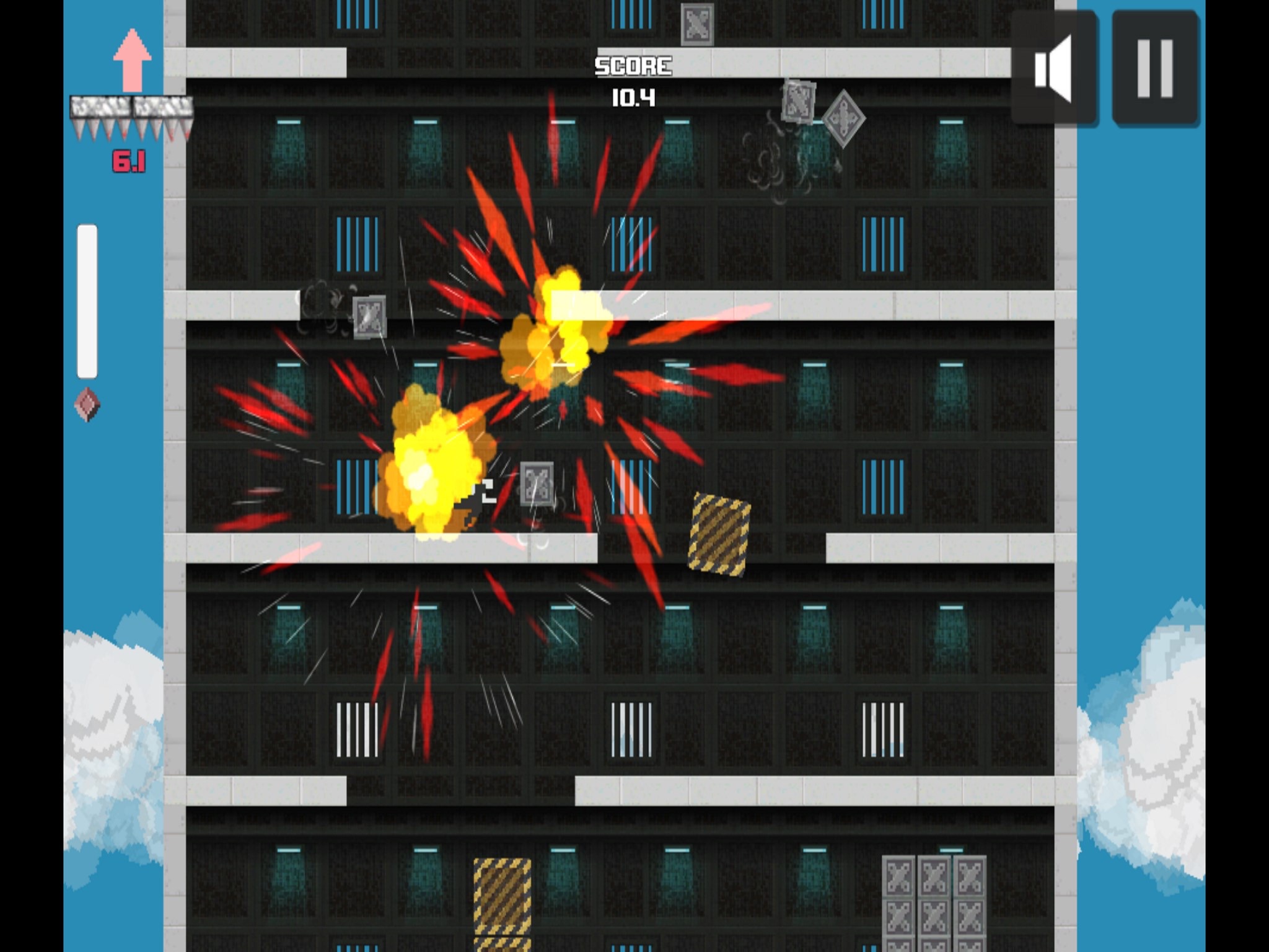 Super Tower Rush is retro arcade fall down runner game.