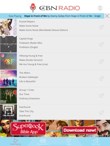 • Review a list of the most recent songs played on Superbook Radio