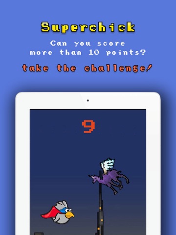 This is a game about a chicken that can fly! Avoid as many obstacles as you can. It takes an expert to last more than 10 seconds.