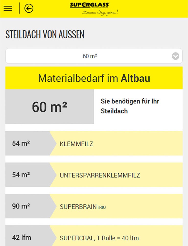 Wie dämmen Sie zukunftsweisend und effektiv Dach und Wand? Dämmen auf Passivhausniveau? U-Werte und Dämmdicken? Alle Informationen in einer App. Ob Alt- oder Neubau, mit der SUPERGLASS App erhalten Sie einen Überblick über den Materialbedarf für Ihr Dämmprojekt.