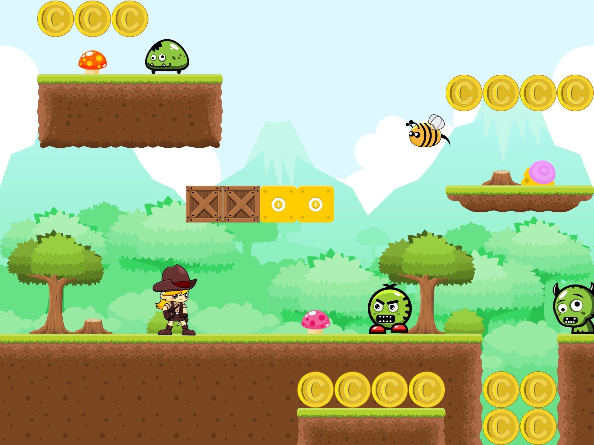Collect the coins and game items which will help your adventure much easier.