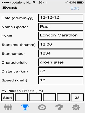 - Data about the characteristics of the athlete on wich the Spectator can recognize the athlete