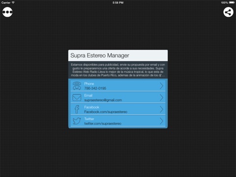 Supra Estéreo es una emisora virtual comprometida con llevarte la mejor música, sonando siempre éxitos. Mas que una aplicación de mezclas o un playlist fijo somos una verdadera emisora virtual, tenemos djs en vivo en diferentes horarios, llegamos para sonar toda la música que las emisoras convencionales no suenan y que son las que escuchas en la calle, estamos comprometidos con llevarte maxima variedad, música nueva y los éxitos que ya conoces. Disfruta de la Mejor Música!