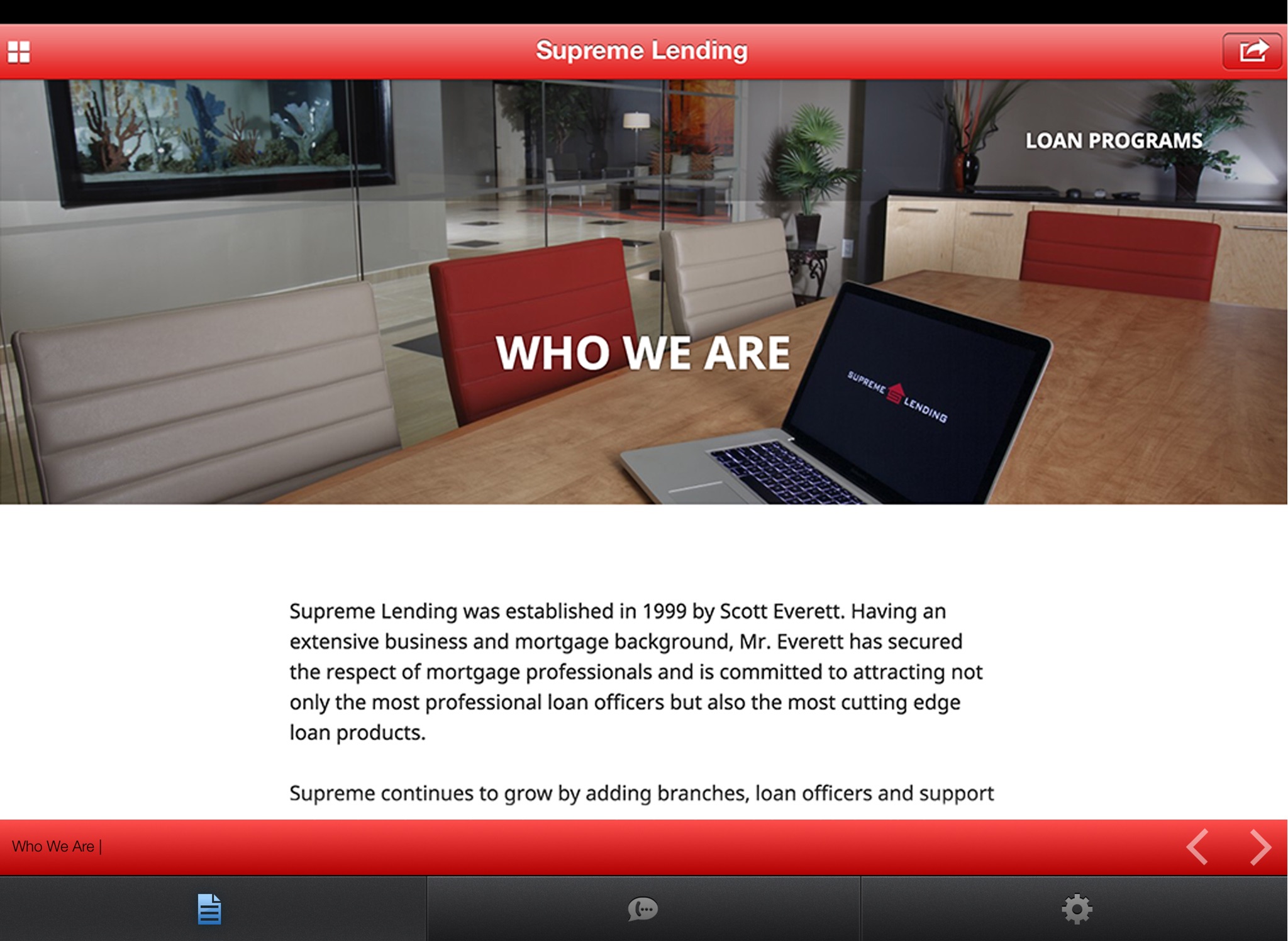 Welcome to Supreme Connect, Supreme Lending’s Corporate App! Supreme Lending associates have access to real-time notifications from Corporate Headquarters, including weather-related impacts to business operations, market watch updates, licensing reminders, and more! Use Supreme Connect’s HR section for easy access to benefits providers or stay up-to-date with training information in the app’s training section. From contacting Branch Support, to watching the newest Social Media videos, this app is a one-stop resource for information coming from the Dallas Headquarters. NMLS #2129