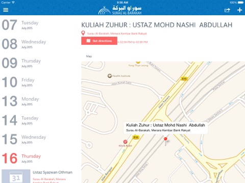2) Surau Information - View information of daily activities provided by the Surau Al-Barakah such as Quran Classes, Talks, Location of Surau etc. and contact directly through apps.