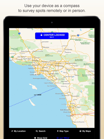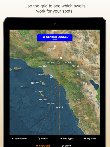 • Tap "Lock Center/Center Locked" to toggle whether or not the degree angle lines float as you move the map or stay locked on your spot.