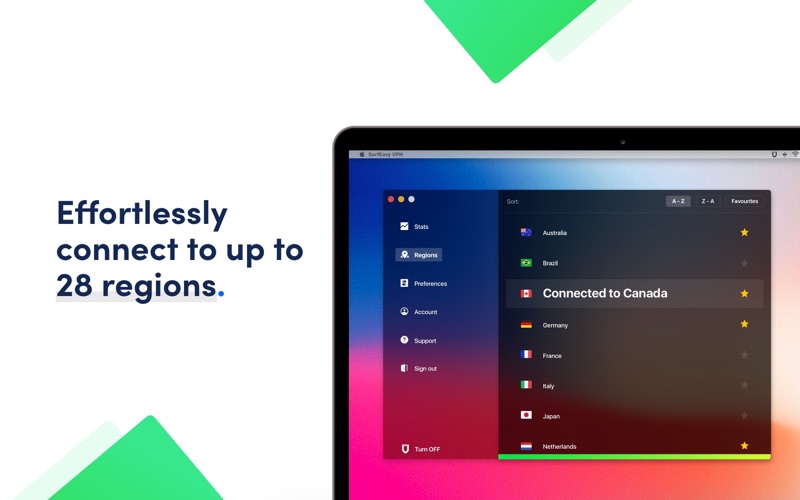 Developed with our system integrated VPN tunnel technology to take advantage of your Macs hardware power, SurfEasy VPN for Mac has all your favorite features wrapped up in a sleek and intuitive interface.