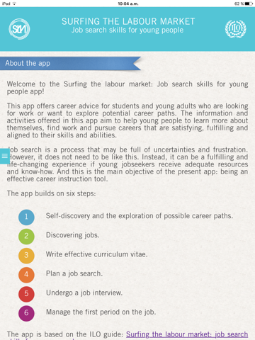 The app is based on the ILO guide "Surfing the labour market: job search skills for young people".