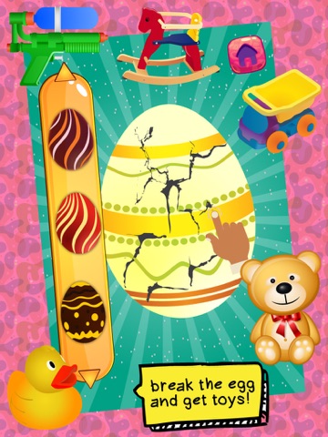 Look whats hidden inside the eggs? Tap on egg until its striped and find out what the surprises are hidden in eggs!