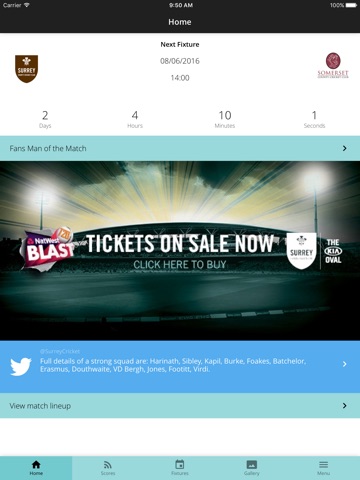 The Official Surrey Cricket Match Day App gives you access to live up to date information when you need it.