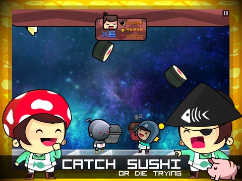 Sushi are falling from the sky! Race to catch them as they drop faster and faster in this fast-paced action arcade game. Updated with 5+ New Upgrades.