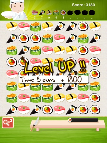 The goal of this game is to sell sushi. To sell sushi, line up 3 or more sushi of the same kind.