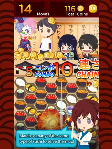 Draw a line through at least 3 sushi to serve them up! How many sushi can you match in a single stroke?