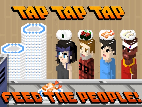 See what the customers want to eat and tap the customer to eat the sushi in front of them. But watch out! If you waste the sushi by letting it pass by or you eat the wrong sushi, the chefs going to throw you out!