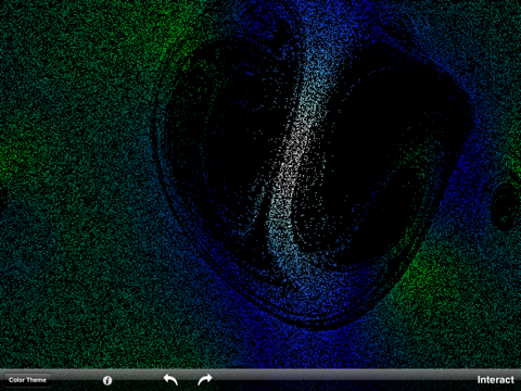 The code is highly optimized to allow a large number of particles to be simulated : it uses the NEON vector instructions of the CPU, and when present, both cores of the CPU. Therefore, it runs best on iPhone 4S and iPad2. It also runs on older hardware (starting from 3GS), but with a lower number of particles.