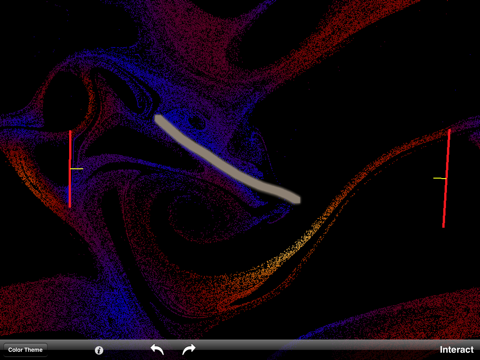 You can choose between 5 different color themes. In themes 1 through 3, color is dependent on fluid speed, in theme 4 it depends on fluid orientation.