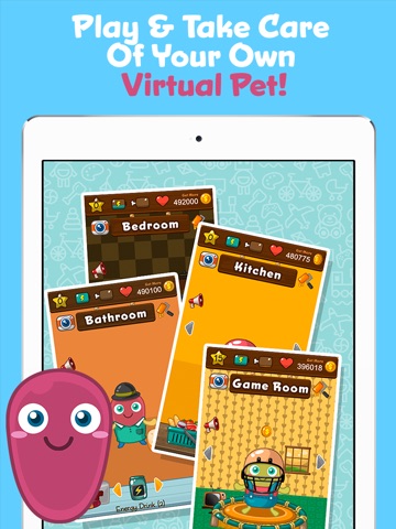 ● Have fun taking care of your own virtual pet while playing these fun games: