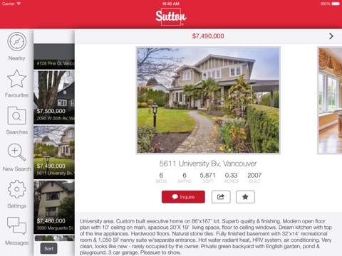 • Fully Integrated With www.sutton.com - Search on your mobile device or on your home computer or laptop. All your saved searches and favourited listings will also be available when you log into your profile with your email address.